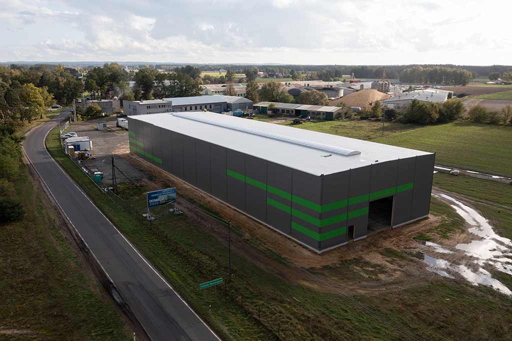 Budowa hali produkcyjno-magazynowej z częścią socjalną oraz budowa naziemnego zbiornika na wodę do celów ppoż. w systemie generalnego wykonawcy. W obiekcie przewiduje się halę produkcyjno-magazynową pod produkcję chłodni i masarni kontenerowych do magazynowania upolowanej zwierzyny łownej. Projektowany budynek to obiekt parterowy, z dachem płaskim dwuspadowym. W hali wykonano antresolę w konstrukcji stalowej z żelbetowym stropem monolitycznym. Zbiornik na wodę jest obiektem systemowym w konstrukcji stalowej o pojemności 745m3.